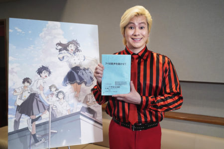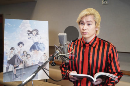 この度、本作で声の出演を務めるカズレーザー(メイプル超合金)が、土屋太鳳演じるシオンが転入する景部高等学校・担任役で出演していることが明らかとなり、アフレコ時のスチール写真と場面写真が到着しました!